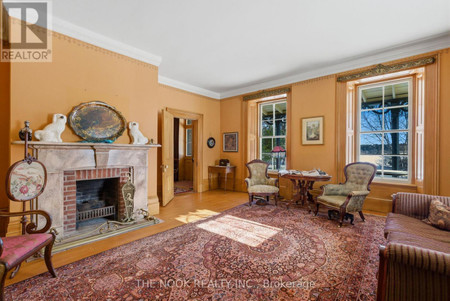 A "One of a Kind" 80 Acre Jewel! Welcome to the historic "Floradale" Stone Farm House circa 1865 built for John Galbraith & Flora MacConnachie of Scotland who were importers & breeders of Clydesdale horses. Designated as a property of historic/architectural value or interest under the Ontario Heritage Act, this home was identified as one of the earliest fine stone houses in the region. What a grand 3600 SqFt Stone home with architectural features: a traditional centre hall plan yet unique with a t-shape exterior at the back of the home, the wrap around verandah & gingerbread trim on the south wing, the Cross & Bible front door with its rectangular sidelights & three part transom, the original stone voussoirs and on the inside, the wood trim, wide plank pine flrs, casings around the 18" window recesses, the kitchens 8 original doors & 4' high wainscoting & more. This 4 bdrm home has many practical features: generous closet space, upper level laundry room, a mnflr powder rm, a large upper bathroom. Beautiful details welcome you: the spacious foyer, 10' ceilings, the centre hall staircase with beautiful handrail & rosette detail resting on the unpainted,wooden newel post. The very large diningroom features stunning plaster details at the centre ceiling plus lovely cornices around the room. The kitchen is the heart of this home w/ a woodstove, private back staircase, granite countertops, large walk in pantry w/o to yard & to south west facing stunning verandah. This 80 acre property has approx 45 acres of farmed land, your own enchanted forest area, a pond, a log cabin "shed", foundation portions of the original barn, perennial gardens & more. So peaceful with few homes on this paved road, great for cyclists and runners, just 2 min drive to Hwy 115 w/ access to the 401& 407 for commuters; this is country, yet the nearby urban amenities of Historic Downtown Bowmanville & Newcastle as well as country living experience of nearby Brimacombe ski hill & Ganaraska F (id:1945)